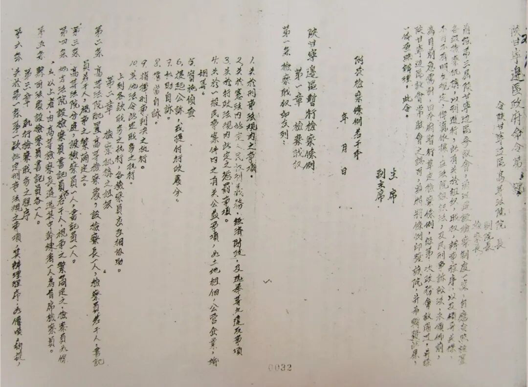 《条例》是第一个关于检察制度的单行法规,为陕甘宁边区检察机关依法履职提供了法律依据,在人民检察理论创新和立法实践上留下了浓墨重彩的一笔。