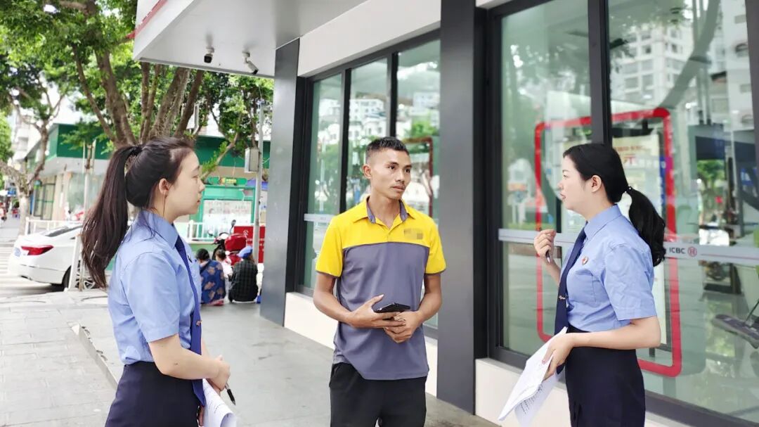 2024年夏天,贵州省册亨县检察院检察官向外卖小哥开展问卷调查,了解高温天气津贴发放情况。