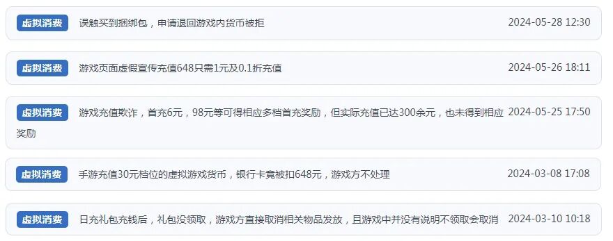 在人民网“人民投诉”平台上,涉及未成年人网游大额充值,因付款环节验证充值人实际身份的有效措施缺失引发的纠纷显著增多。相关典型投诉问题包括实名身份认证成摆设,大额高频充值无提醒,平台和游戏方恶意设置退款障碍、退费额度不合理,防沉迷系统“失防”等。