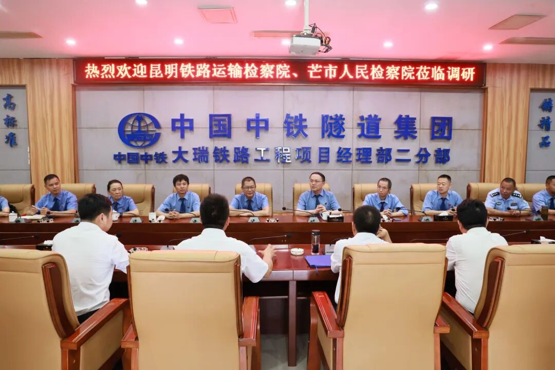 2025年5月22日,芒市人民检察院第一党支部与昆明铁路运输检察院第一党支部以“弘扬大无畏精神 服务高水平对外开放”为主题,到大瑞铁路高黎贡山隧道施工现场联合开展主题党日活动。