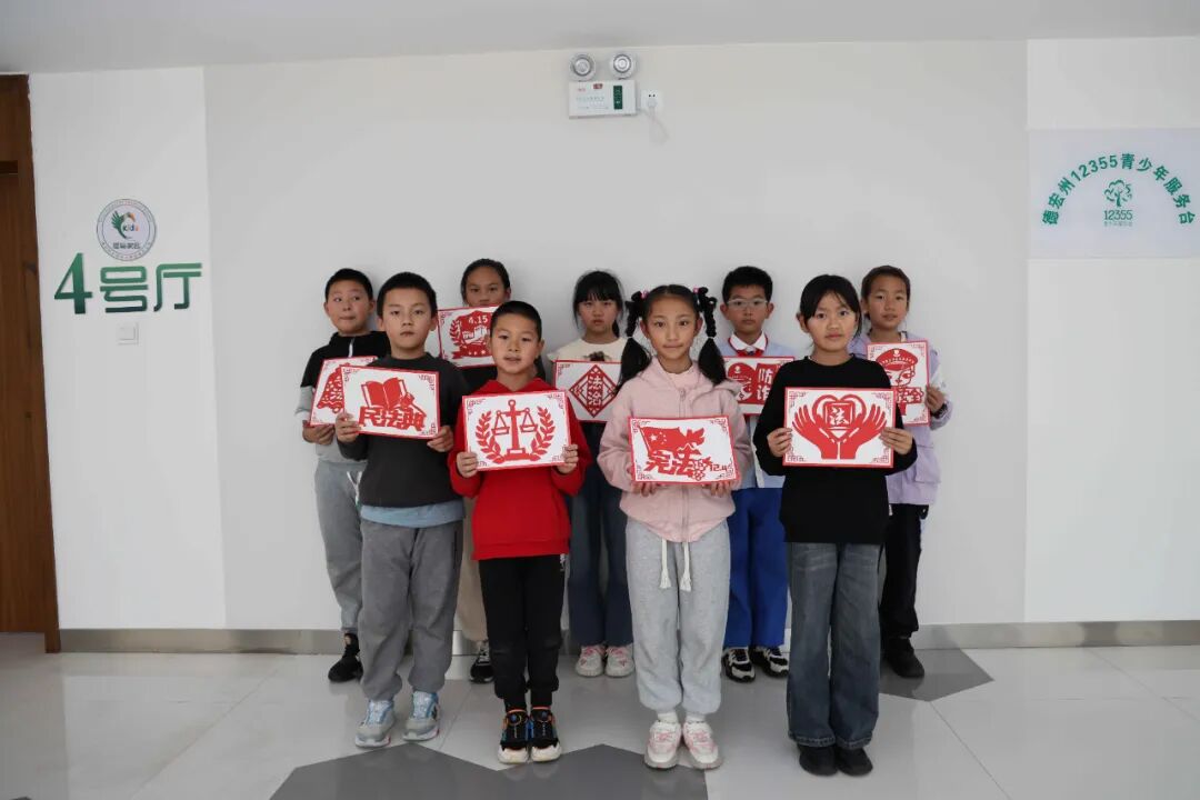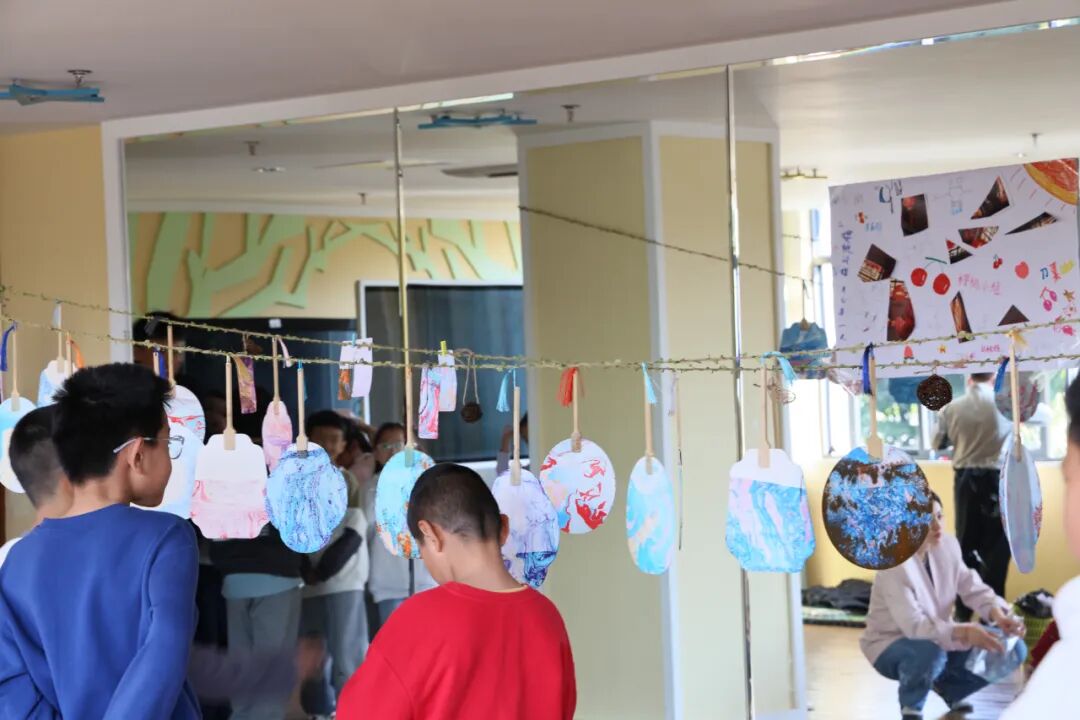午休后,孩子们开动小脑筋,依据主题分组编排勇敢小剧场,自导自演关于校园霸凌、冲突与矛盾、早恋、毒品的故事,更加深刻体会和思考生活中的法律问题。工作人员还带领孩子们一同体验制作漆扇,并按分组制作手账海报并展示,提升了小组凝聚力。