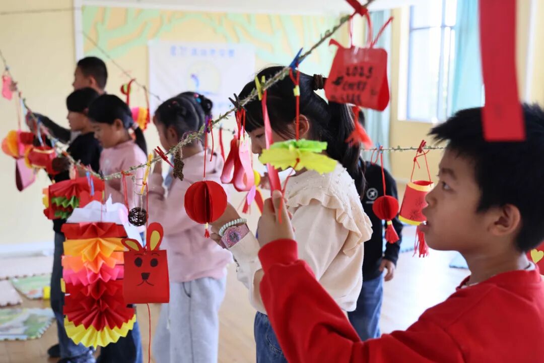 1月18日,孩子们共同演绎了关于春节“过年”“压岁钱”“灯笼”等传说,为了让孩子们更好地了解和体验传统文化,工作人员带领孩子们一起做灯笼、剪窗花,传统文化和孩子们的想象力碰撞到一起,产生了“兔子灯笼”“纸飞机灯笼”“纸杯灯笼”等有趣的灯笼造型,小小巧手更是剪出了精美的窗花。
