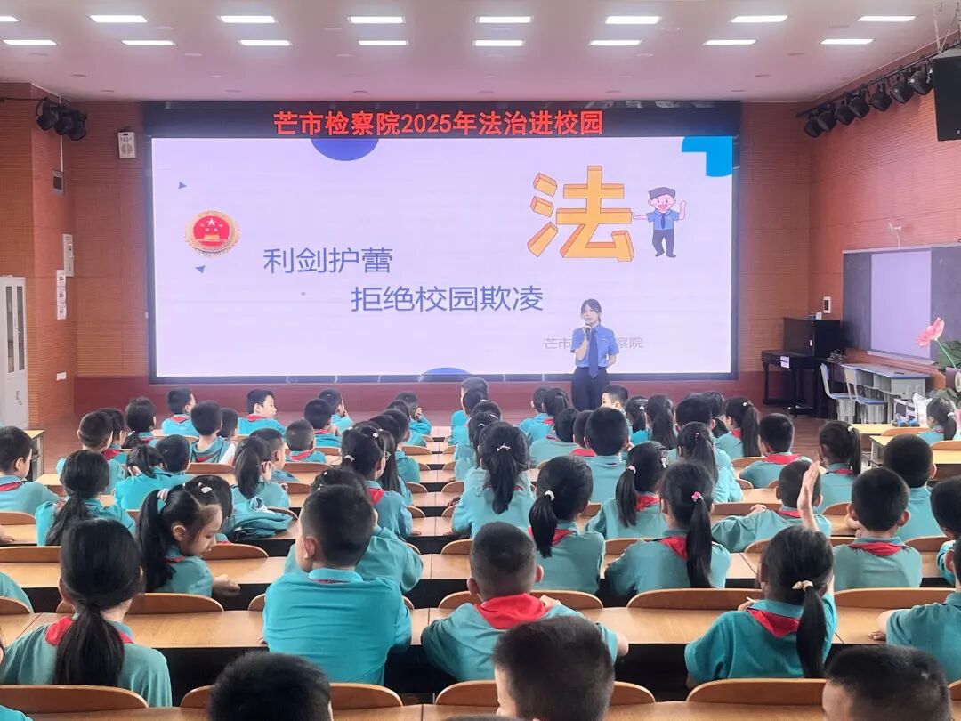 在“六一”国际儿童节来临之际,为营造平安和谐的校园环境,增强未成年人法治意识与自护能力,5月27日,芒市人民检察院以“检察开放日”为契机,开展法治进校园活动,走进芒市第三小学,开展了一场主题鲜明、互动热烈的“预防校园欺凌”法治宣讲活动。