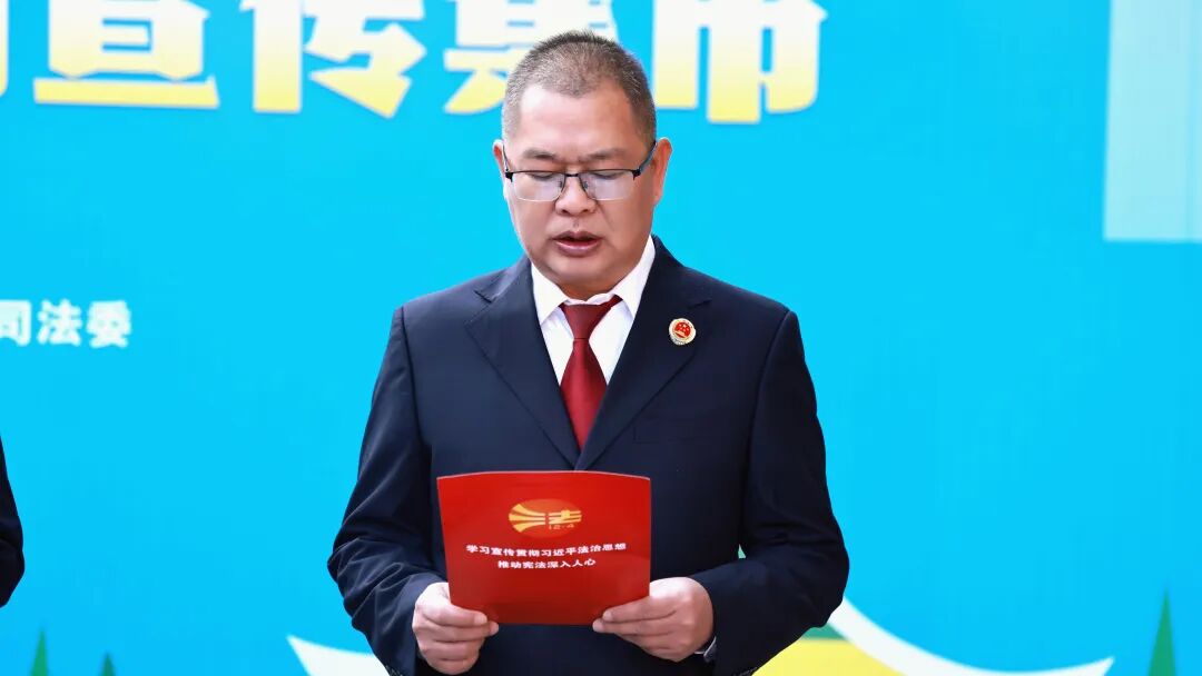 该院组织全院干警举行庄严的宪法宣誓仪式。宣誓现场气氛庄严隆重。领誓人左手抚按宪法,右手举拳,领诵誓词,其他宣誓人列队站立,右手举拳,跟诵誓词。铮铮誓言,字字千钧,表达了对宪法的崇高敬畏和忠诚信仰,彰显了检察人员坚决维护宪法权威、履行法律监督职责、维护社会公平正义的坚定决心。