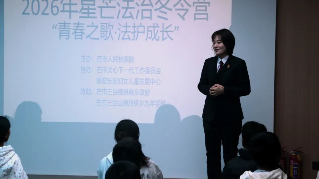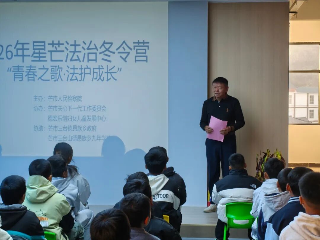 冬日渐远,春意初萌。2026年2月2日至3日,芒市人民检察院携手芒市关心下一代工作委员会与德宏乐创妇女儿童发展中心,首次将法治教育与心理支持深度融合,走进三台山德昂族乡九年制学校,共同为36名德昂族中学生举办了一场内容充实、形式生动的“青春之歌·法护成长”星芒法治冬令营。