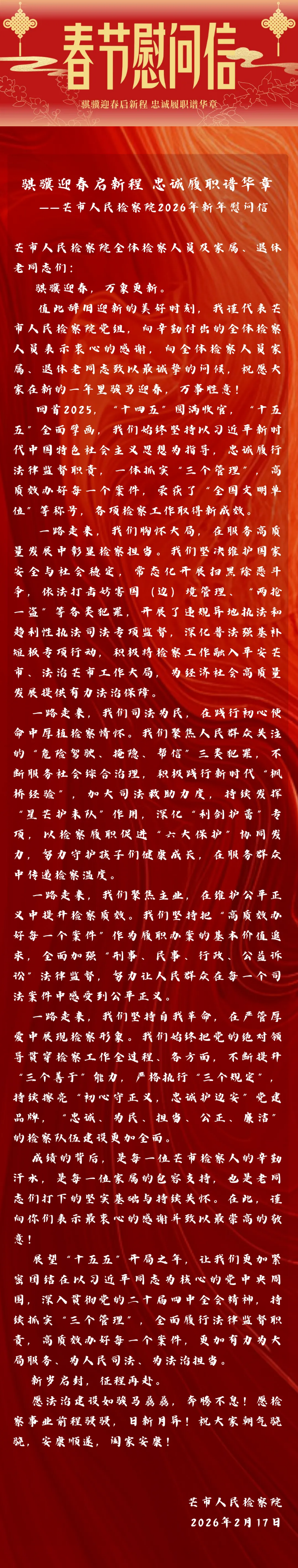 手机细览 芒市人民检察院2026年新年慰问信