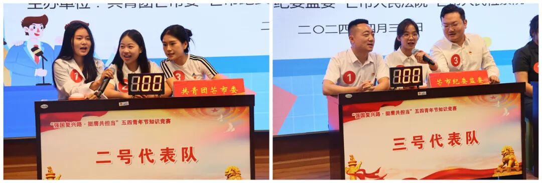 本次竞赛活动,围绕党的二十大精神、党章、团史知识等内容,共设置个人必答题、团队必答题、团队抢答题、风险挑战题等四个环节,来自5支代表队15名参赛选手同台竞技,比分你追我赶、交替上升,现场气氛空前高涨、紧张激烈,在激烈地交锋对垒中,将现场气氛推向了一个又一个高潮。此次竞赛主题鲜明、内容丰富,主要目的是以“竞”激发青年学习热情,以“赛”铸牢的工作理念。经过激烈角逐,芒市人民检察院荣获一等奖;芒市纪委监委获得二等奖,共青团芒市委获得三等奖,芒市边境管理大队、芒市人民法院获得优秀奖。