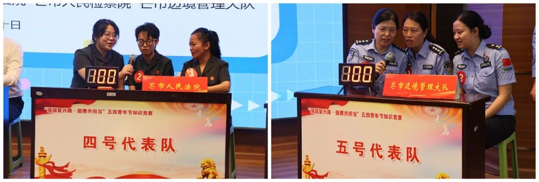 为激励和引领广大青年继承和弘扬“五四”精神,充分展现当代青年奋发进取的精神风貌。4月30日,芒市人民检察院联合芒市人民法院、芒市边境管理大队、芒市纪委监委、共青团芒市委开展“强国复兴路·挺膺共担当”五四青年节知识竞赛。