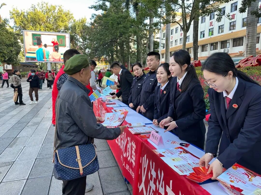 开展一次系列普法宣传,营造法治氛围。结合普法强基补短板专项行动,积极落实“谁执法谁普法”普法责任制,广泛开展“线上+线下”联动的宪法宣传活动。线上,组织干警拍摄普法视频3部,其中《宪法与我共同守护法治精神》被学习强国等多个平台采编转发。线下,在街心花园、傣族古镇等人员密集处发放宣传资料500余份;驻村干警、普法强基各分队及退休老干部开展入户走访,并组织70名法治副村长及村社干观看普法视频,多样式开展宪法宣传及其他法律法规宣传,努力营造尊法学法守法用法好氛围。