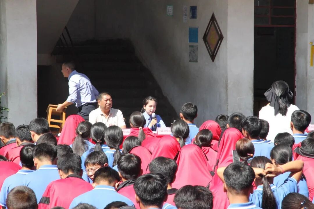 925日下午,芒市五岔路中学的操场变身“安全课堂”。五岔路乡人民政府联动芒市人民检察院、芒市人民法院、芒市司法局、芒市公安局交警大队及芒市五岔路乡派出所,组建“五方专业力量”为全校师生带来一堂兼具“实用干货”与“深刻警醒”的校园安全“必修课”。芒市人民检察院未检干警以案释法,用通俗易懂的语言提醒同学们学会独立思考,预防违法犯罪,运用法律武器维护自身权益。